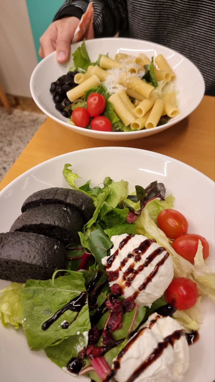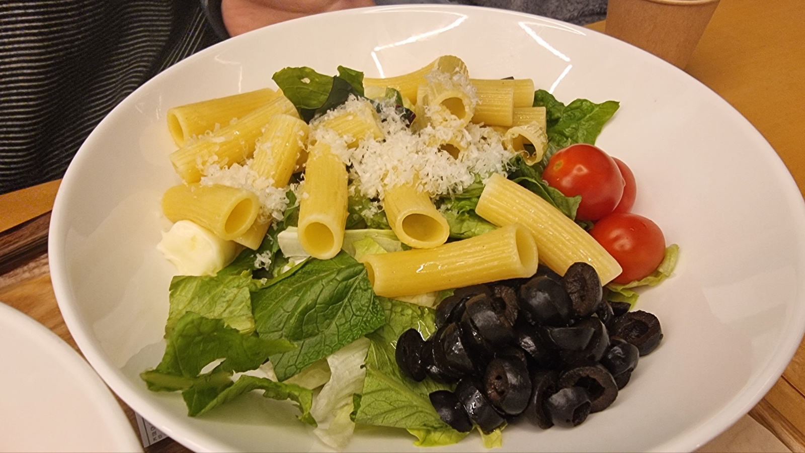 바질 파스트 샐러드에는 제가 좋아하는 올리브도 한 줌 들어 있는 모습입니다.