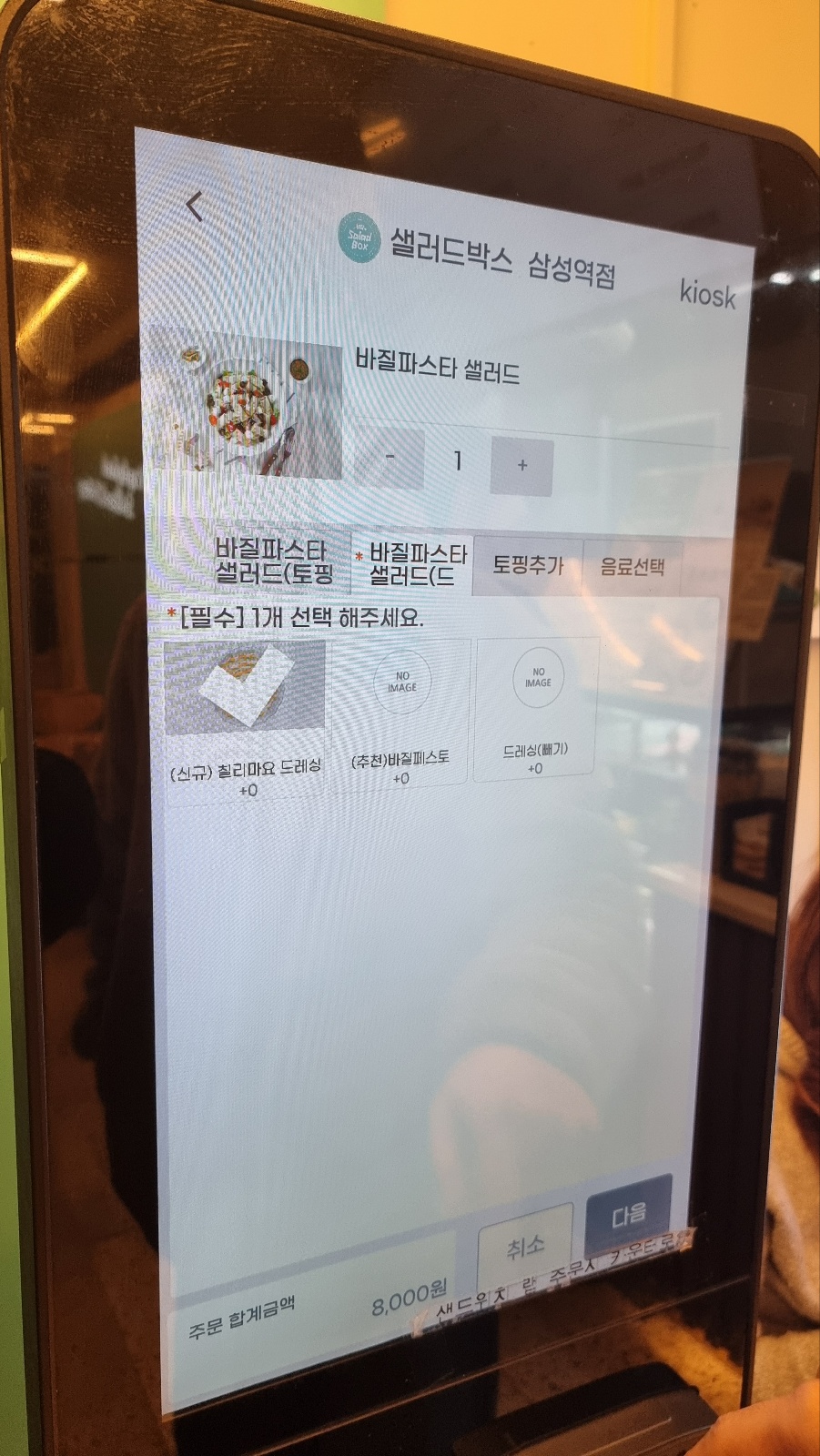 짝궁은 바질 파스타 샐러드를 주문했습니다. 엇... 저것도 무척 먹음직스러워 보입니다. 약간 더 출출한 경우에 방문하는 경우에는 저 도 바질 파스타 샐러드를 한번 트라이 해봐야겠습니다.