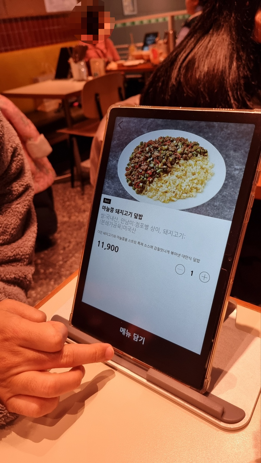 홍콩식 치킨 덮밥 12,900원, 짝궁은 마늘쫑 돼지고기 덮밥 11,900원, 밥 아저씨 주문~ !