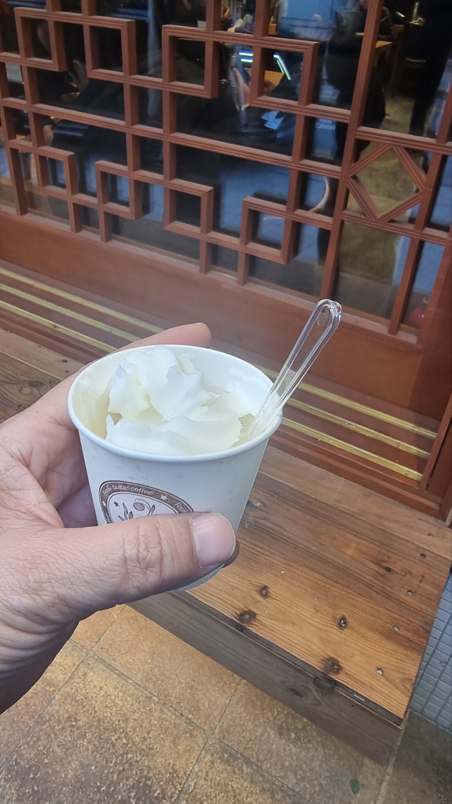콘에 먹을 사람은 콘에, 저 처럼 차가운 거 빨리 못 먹는 척(?)하는 사람들은 종이컵에 내려 받아도 됩니다. 날씨만 겨울이 아니면 완전 인기 대폭발 아이템이 될 것 같습니다.