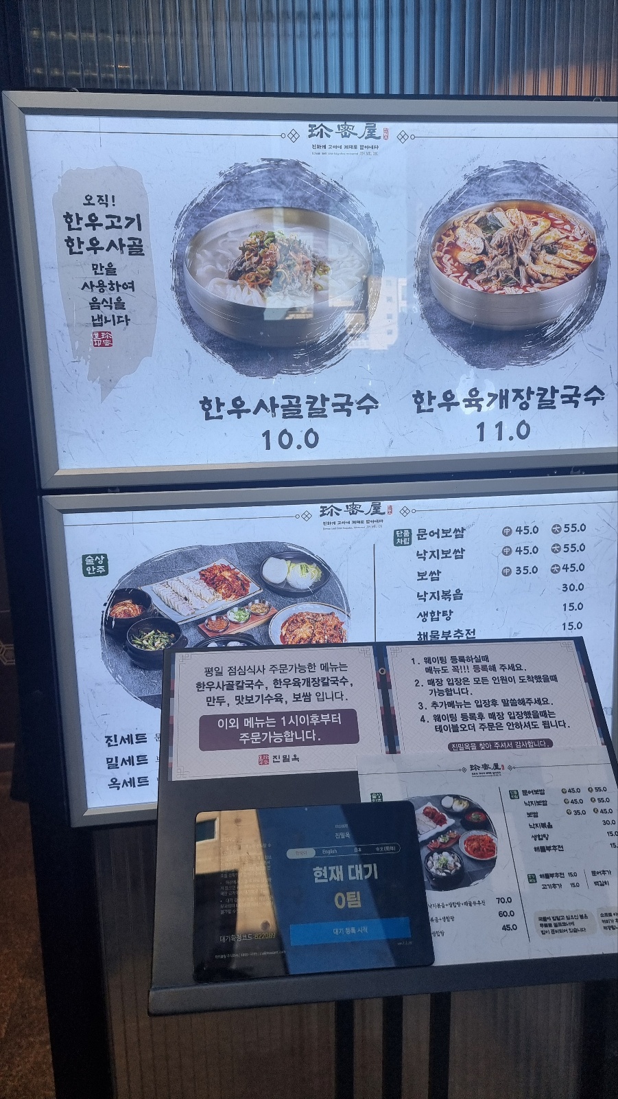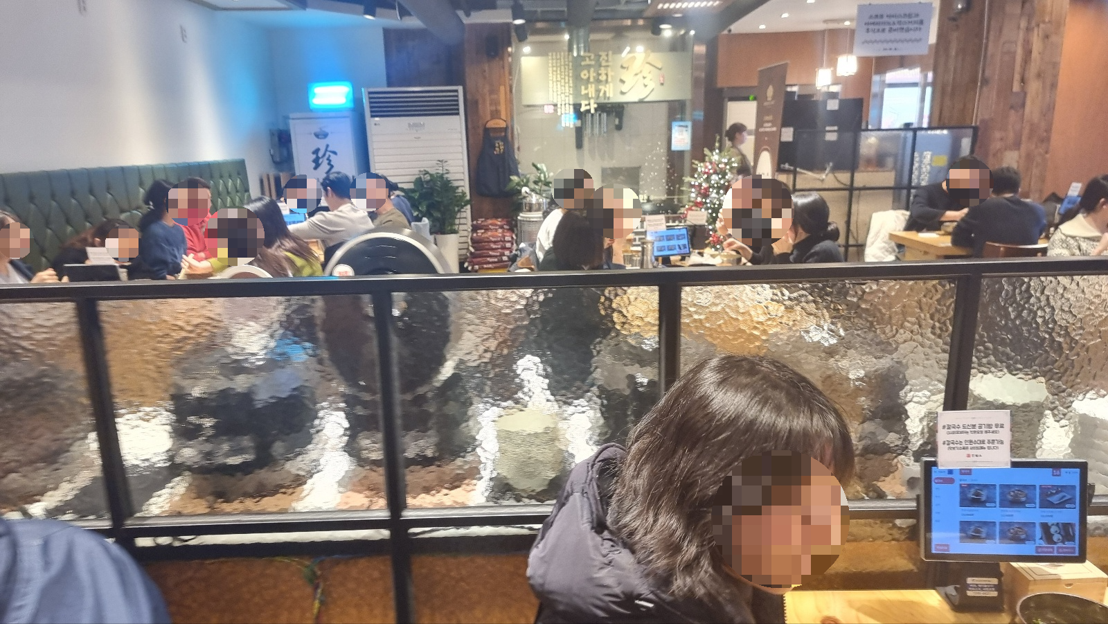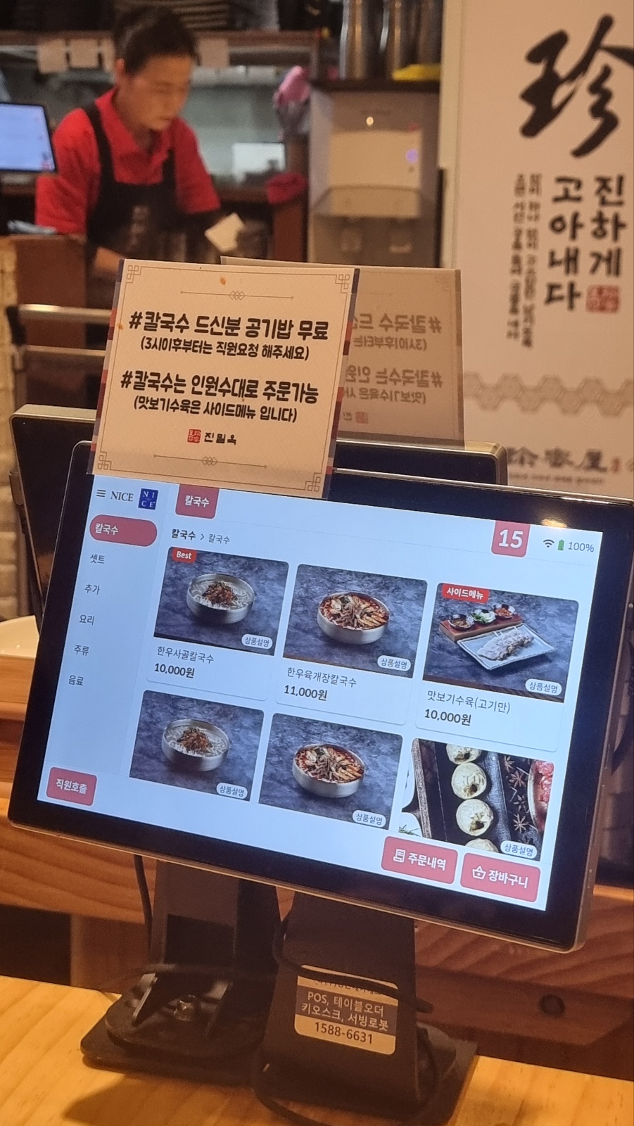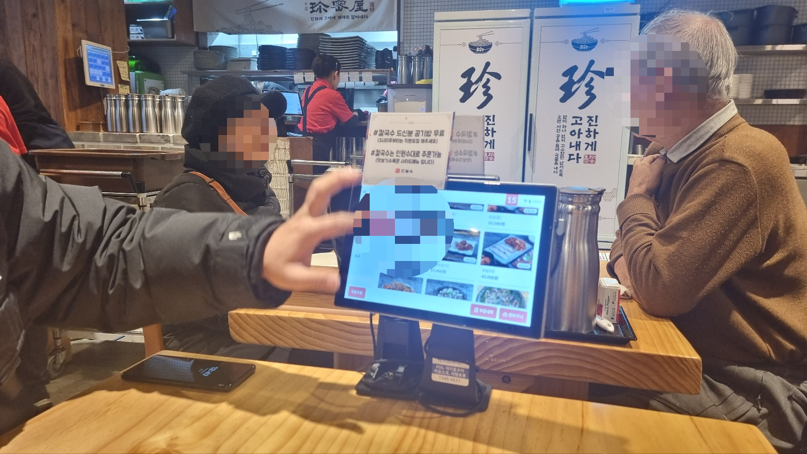 진한 육수 국물로 인해 나이 지긋하신 분들께도 인기가 많을 법합니다. 주문은 이렇게 자리에 앉아서 키오스크로 진행합니다.
